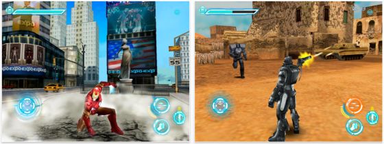 Die Steuerung ist so, wie man es erwartet. Man bewegt sich über das Bewegungskreuz links unten, rechts wird gezielt und gefeuert. Kleine Symbole kann man antippen, um sich zu ducken, zu laufen oder zu springen.