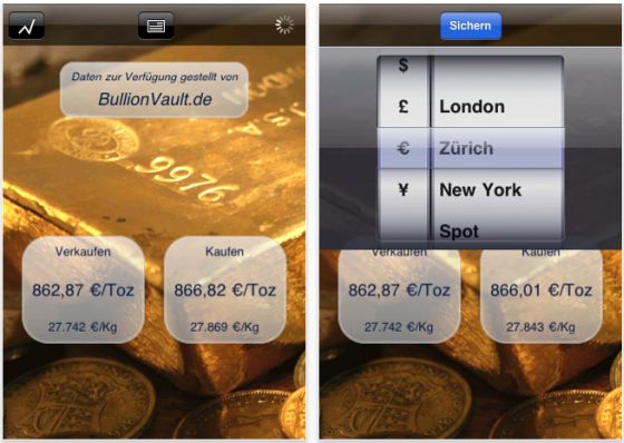 Die App ist gerade jetzt sehr interessant und nützlich, um den aktuellen Goldpreis zu verfolgen oder zu sehen. Interessant auch, das man mit der App den Wert des Goldes vor einigen Minuten, Tagen oder Jahren sehen kann. Was sind schon 2,39 Euro, wenn man sehen möchte, wie sich der Wert der Goldbarren und Goldmünzen täglich in die Höhe schraubt?