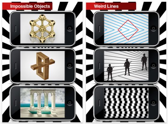 Die verblüffenden Täuschen von Eye Illusions wurden auch für das iPad und iPhone 4 optimiert.