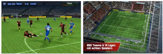 Real Football 2011 bietet Dir insgesamt 350 Teams in 14 Ligen. Finde Deinen Lieblingsspieler in den Ligen von England, Frankreich, Spanien, Argentinien oder Brasilien. Du kannst Dein Team auch wie ein Trainer managen und sie aufs Feld durch die ganze Saison führen. In dem Spielmodi ‚Enter the Legend‘ hast Du die Möglichkeit, das Leben eines echten Profis zu steuern und im Rampenlicht zu stehen. Über den Wi-Fi- oder Bluetooth-Mehrspielermodus kannst Du Deine Freunde und Bekannten zu einem Duell herausfordern.