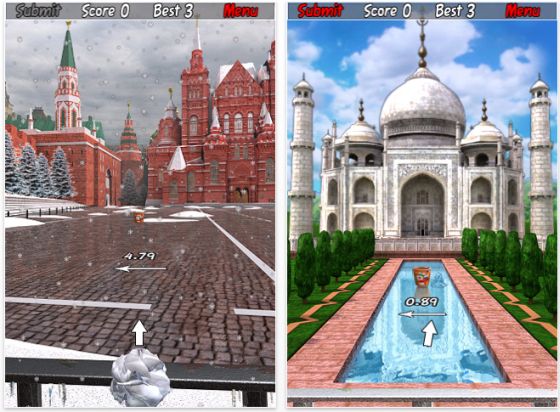 Zeige in Paper Toss World Tour Dein Können in der Disziplin Papierkugel-Zielwerfen in Orten auf der ganzen Welt. Zum Beispiel in Moskau auf dem roten Platz, vor dem Taj Mahal in Indien oder im Dschungel des Amazonas.